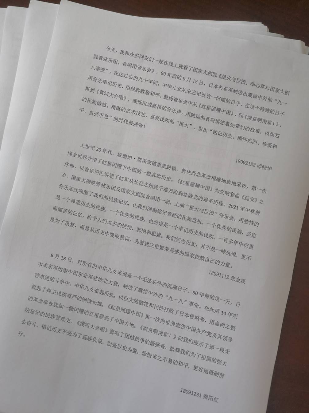 音乐会上,全体学生党员认真聆听了《黄河大合唱》《红星照耀中国》《南京啊南京!》等经典曲目。指挥家李心草与琵琶演奏家张强、女高音歌唱家周晓琳、男中音歌唱家王海涛、朗诵者赵岭,以及国家大剧院管弦乐团及国家大剧院合唱团的艺术家们,发出“铭记历史、缅怀先烈、珍爱和平、自强不息”的时代最强音。