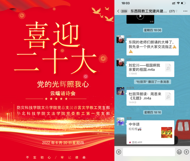 云端诵诗,共庆建党华诞:beat365英国官方网站和东院beat365英国官方网站教工党支部联合举办主题党日活动