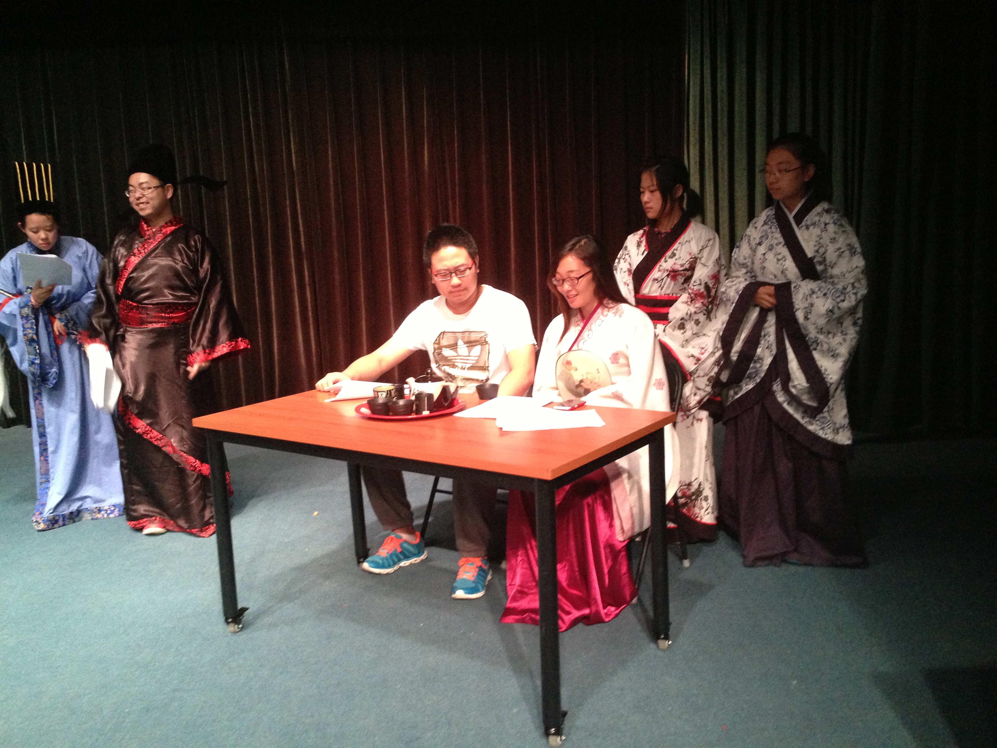 2013 年 6 月 9 日 ,话剧排演活动仍然在火热地进行着,各个剧组都从第一次的纠正台词、走位的层次上又上了一个高度,逐步要求演员有合适合时的语气和眼神,其中李白的放声大笑,刘兰芝的哭诉,局长们奸佞的笑,以及屈原哀伤的语调,都给整个话剧团的成员留下了深刻的印象。