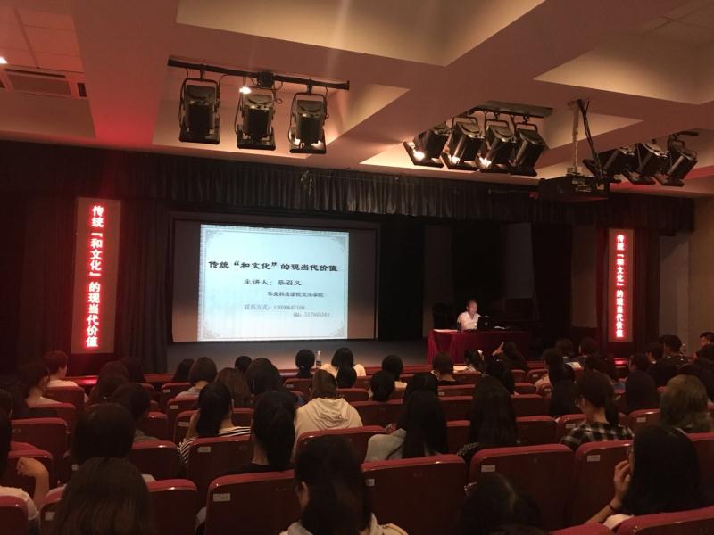 2018年9月20日下午,华北科技学院beat365英国官方网站中文系主任蔡召义副教授来到beat365英国官方网站人文小剧场,为广大师生开设了《中国传统“和”文化的现当代价值》的学术讲座。本次讲座由汉语言文学教研室主任张静主持,汉语言文学专业的同学参加。蔡副教授主要讲解了传统“和”文化源远流长的文化内涵,以及传统“和”文化的现当代价值。讲座弘扬了优秀传统文化,有利于促进学生正确认识国情,激发爱国爱家的高尚情怀。