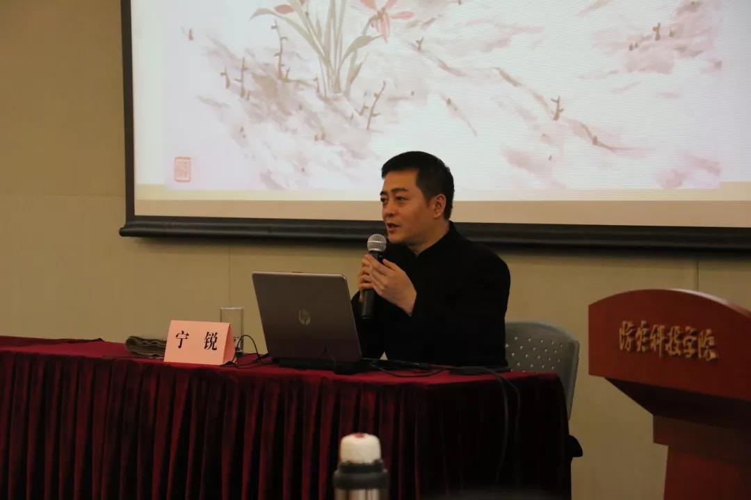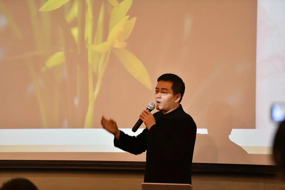 兰花可谓君子人格之写照,爱兰者遍布天下,不乏文人雅士写兰、画兰。本次讲座中宁锐老师先从教大家认识兰花开始,其次宁老师为同学们讲述了中国历代文人画家笔下的兰,以及向同学们展示了其独创的格兰法所绘制的作品。