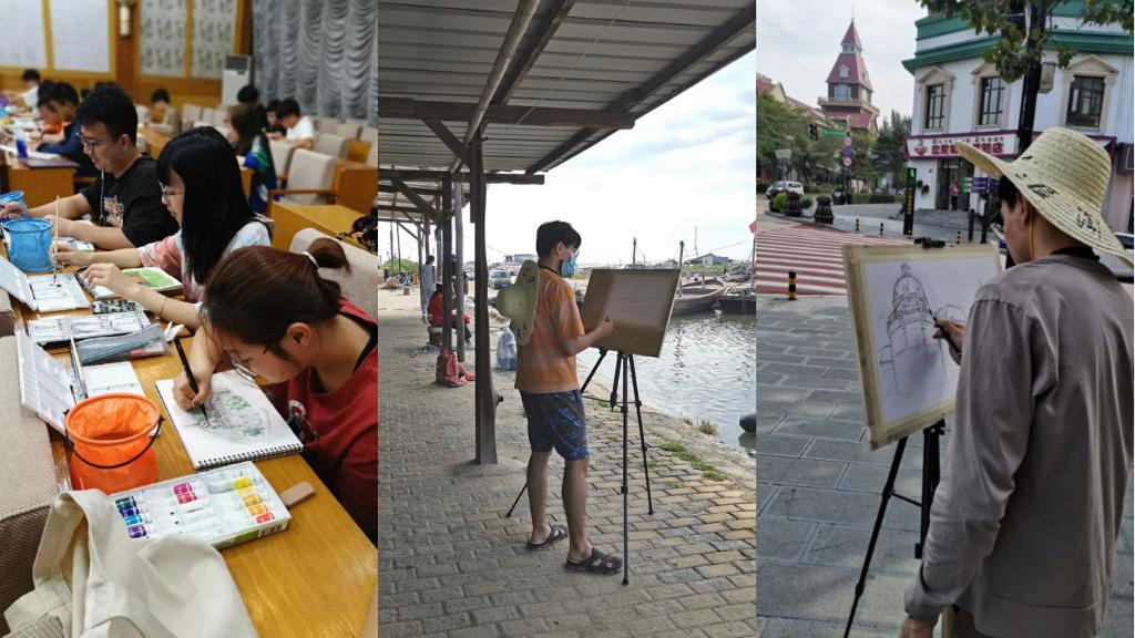 刘院长察看了师生的生活条件和教学场地,并在写生现场认真观看了学生的绘画作品,对师生在写生期间的积极性和热情给予了肯定。