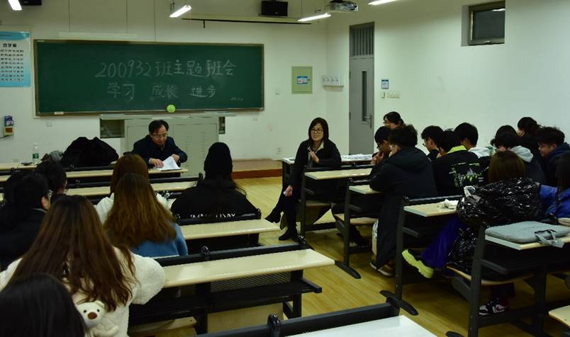 12月13日下午,beat365英国官方网站200932班召开“学习、成长、进步”为主题的学期总结主题班会,校党委委员何本华到会指导,beat365英国官方网站党总书记侯英、辅导员李林锐老师到会与同学们一起交流讨论。