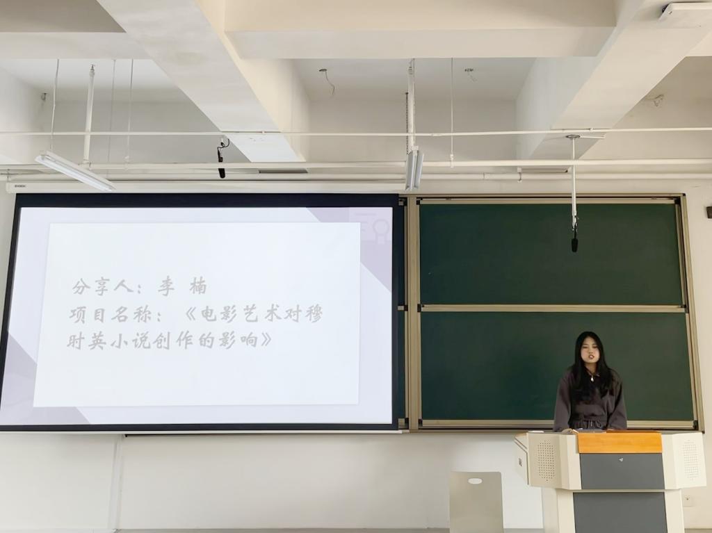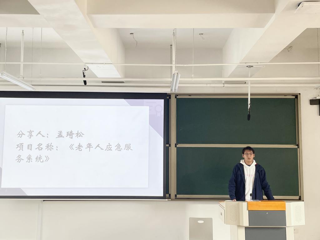 孟琦松同学围绕主持完成《老年人应急服务系统》的项目经历进行了分享。他提出,同学们在申报大学生创新创业项目时要尽可能打开思路,多用多学科、跨学科视野思考问题,要重视小组成员彼此间的合作。李楠同学则分享了开展《电影艺术对穆时英小说创作的影响》创新项目的经验,结合自己在申报大创项目时的经历,为大家更好理清思路、明确方向提出了自己的意见建议。最后,陈力成同学从项目类型、申报条件、选题范围、经费资助、结题要求等方面进行了学校大学生创新创业项目的政策解读,同时也为大家选择课题和相应的指导老师方面提出了意见建议。