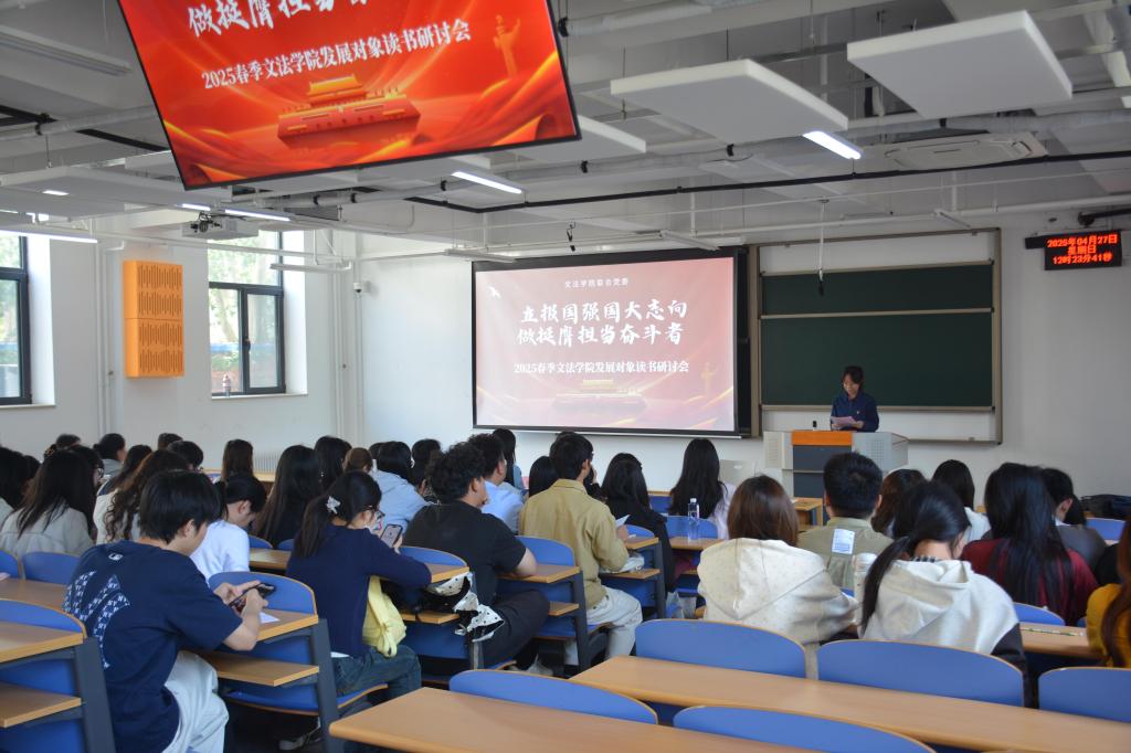 为加强对拟发展对象的思想政治教育,进一步提升其理论素养与党性修养。beat365英国官方网站联合党委于2025年4月27日中午,在文德楼S107教室举办2025年春季拟发展对象读书研讨会。此次研讨会的主题为“立报国强国大志向,做挺膺担当奋斗者”,组织员彭丽丽、孙乐平担任评委,共68名拟发展对象参加研讨会。