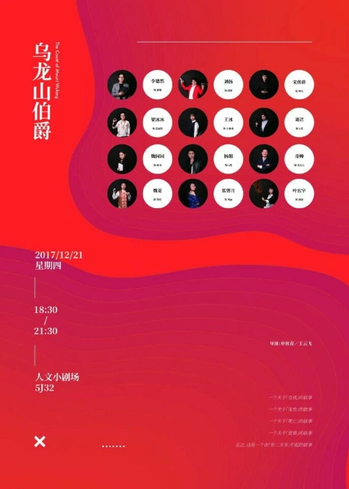 时间:12月21日(周四)晚6:30地点:人文小剧场剧目:《乌龙山伯爵》、《十三角关系》、《牡丹亭》、《红玫瑰与白玫瑰》