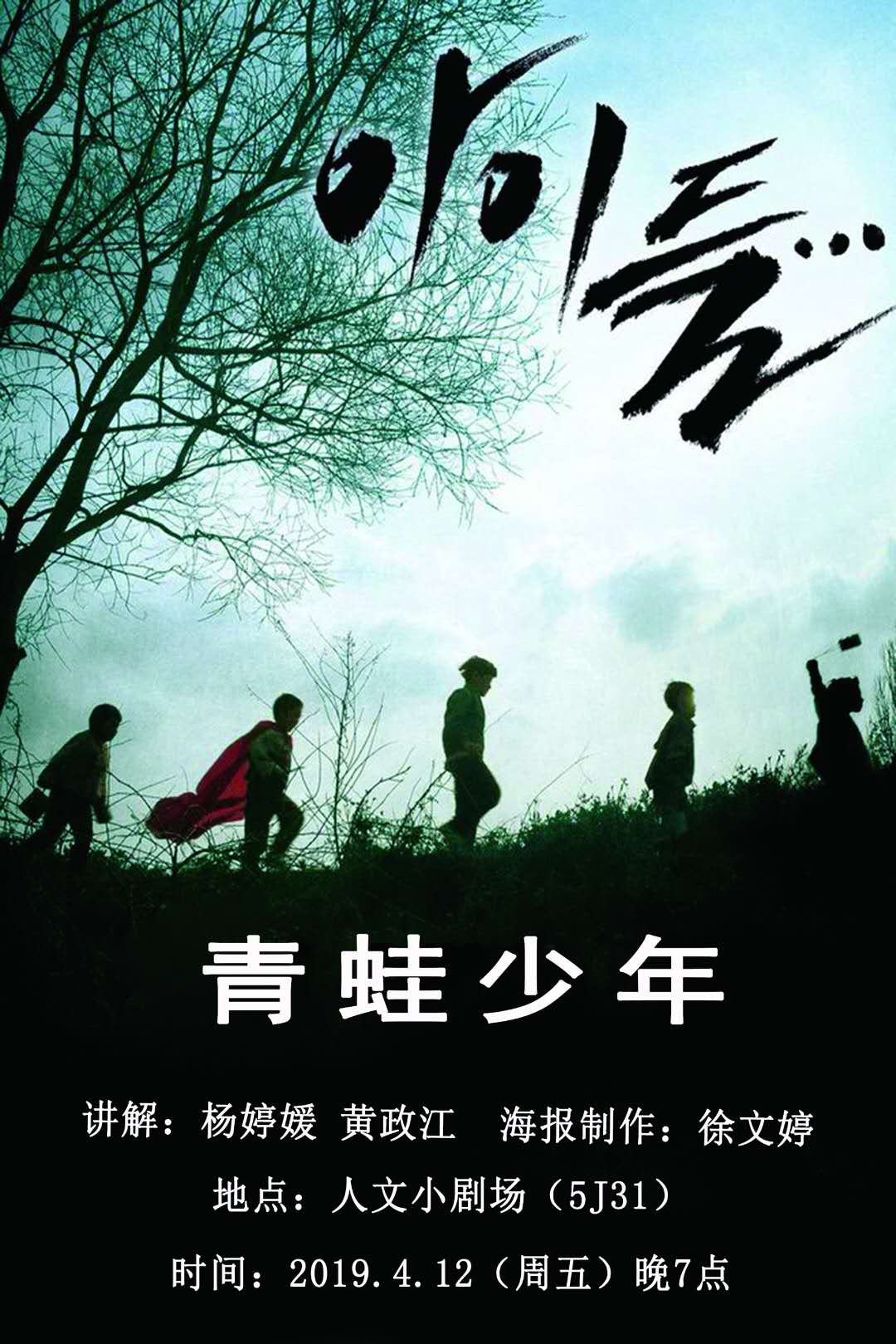 人文电影赏析活动将于4月12日(周五)晚七点,在人文小剧场(5J32)举行,本周将放映韩国电影《青蛙少年失踪事件》。该片改编自发生在1991年韩国大邱的真实案件,讲述了5名小学生抓青蛙时失踪,11年后才被找到尸体,凶杀至今仍逍遥法外的故事。这起被称为“青蛙少年失踪案”的案件被称为韩国三大未解谜案之一。本片并没有直接聚焦于案件发生的进行时,而是把时间之后的追查、猜测、媒体介入与对受害人家庭的影响一并进行阐述。导演李圭满力求最大限度地还原事件的真实性,用正义的镜头还原该事件带给人们的痛苦和反思。本期讲解员:黄政江、杨婷媛;海报制作:徐文婷;指导老师:唐元、张静。欢迎广大师生前来观看。