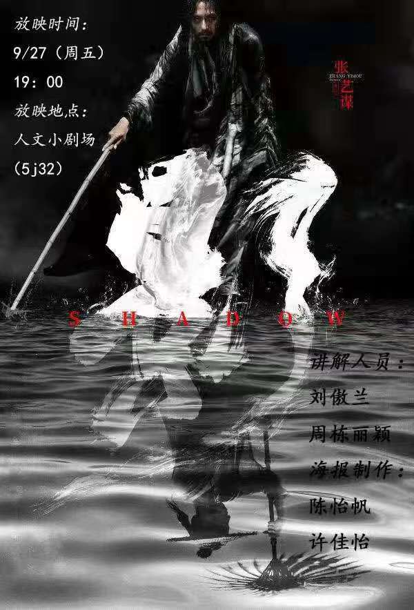人文电影赏析活动将于9月27日(周五)晚七点,在人文小剧场(5J32)举行,本周将放映内地电影《影》。该片是由张艺谋执导,由邓超、孙俪、郑恺等主演的武侠动作影片。该片讲述了一个从八岁就被秘密囚禁的小人物,不甘心被当成傀儡替身,历经磨难,努力寻回自由的人性故事。《影》是一部独具东方韵味的影片,以一种禅意武侠的方式,投射出张艺谋对人性、权谋,甚至生死的哲学思考;也借助如诗般写意的画面,琴萧瑟三种乐器恰到好处的配乐烘托,成功地折服了观众。张艺谋凭借该片获得金马奖最佳导演奖。本期讲解员:刘傲兰;周栋丽颖。海报制作:陈怡帆;许佳怡。指导老师:张静。欢迎广大师生前来观看。