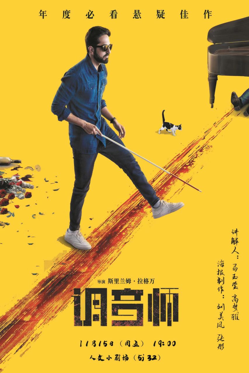 人文电影赏析活动将于11月15日(周五)晚七点,在人文小剧场(5J32)举行,本周将放映印度电影《调音师》。《调音师》是一部悬疑电影,故事灵感来自于2010年的同名法国短片,讲述了一个假扮盲人的钢琴调音师阿卡什在意外成为一起凶案的“目击证人”后,所遭遇的种种出人意料的故事。本期讲解员:高梦雅;张彤。海报制作:刘美凤;马玉莹。指导老师:张静。欢迎广大师生前来观看。