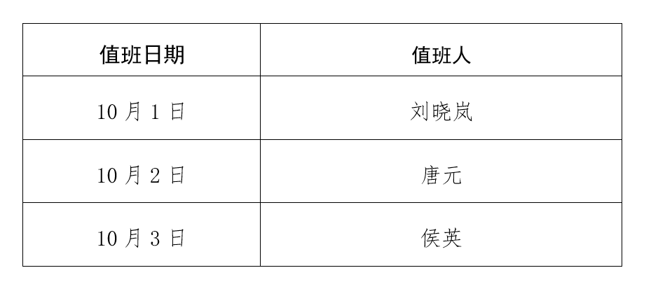 beat365英国官方网站2021年国庆节期间值班人员安排表